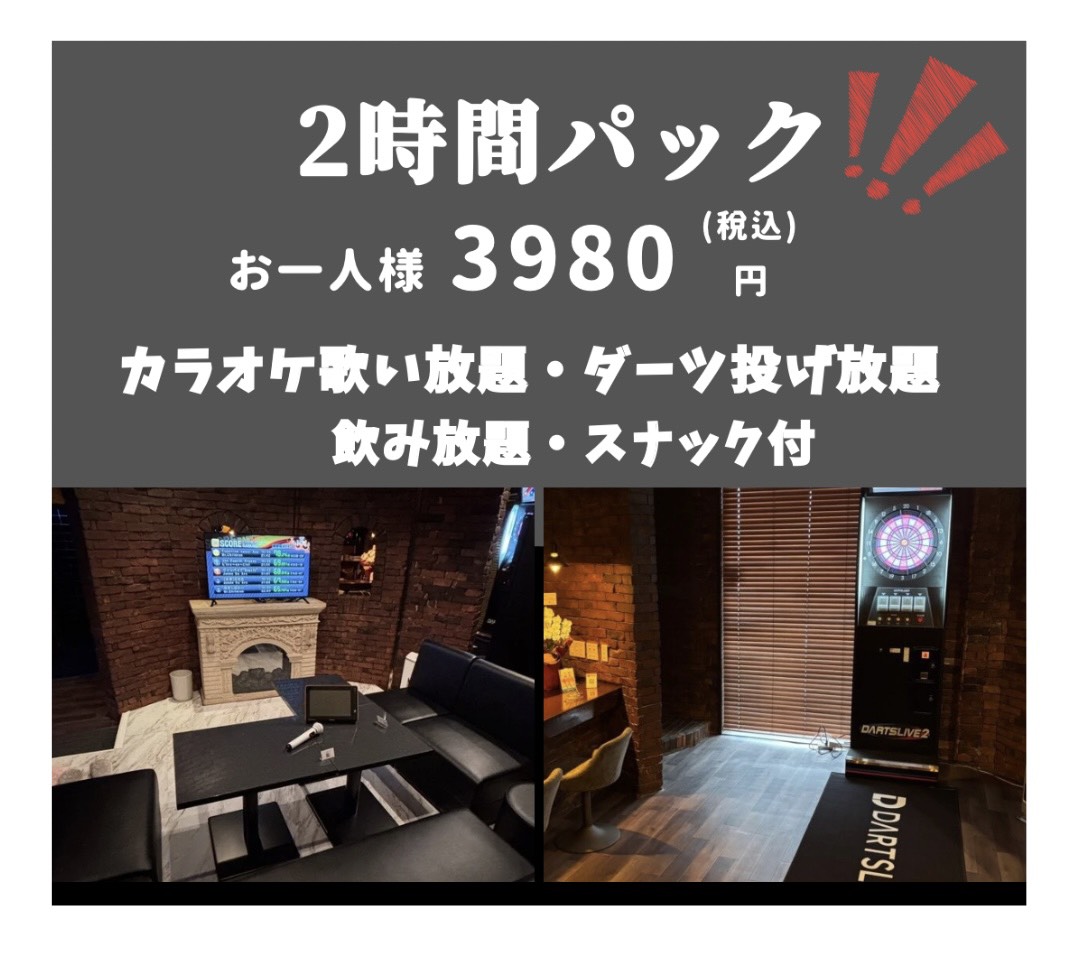 ※カラオケ、ダーツどちらかのみご利用の場合は各パック3480円。